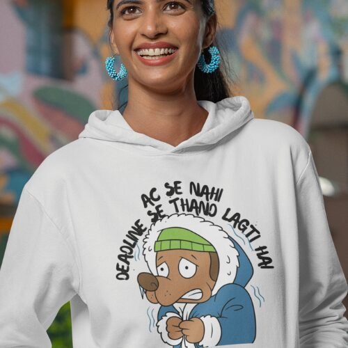 Cold AC? No problem. It’s the deadlines that send shivers down our spine. This hoodie is for every warrior battling Excel sheets, client calls, and unrealistic timelines. Wear your fear proudly — because nothing’s scarier than a missed deadline in Q4. Soft, stylish, and sarcastic — just like your work ethic.