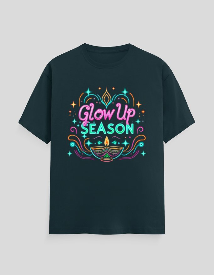 This Diwali, let your style shine brighter than the fireworks! With radiant colors and a bold “Glow Up Season” slogan, this tee celebrates your festive transformation—from chill to full-on chingari.