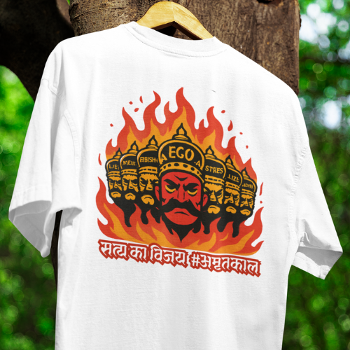 साफ-सुथरा डिज़ाइन, धनुष-बाण और “रामराज्य” की चमक। सत्य, धर्म और न्याय की भावना को पहनिए। हर पहनावा एक वादा—अच्छाई की जीत।