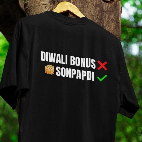 This tee is a tribute to every employee who opened their Diwali bonus with trembling hope… and found Sonpapdi.