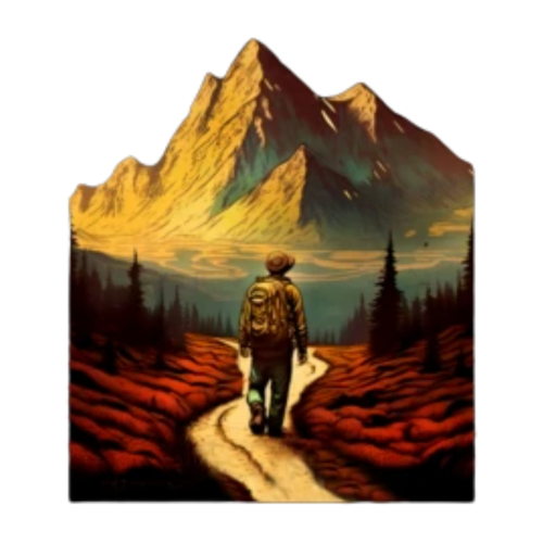 A vivid forest trail leads to golden peaks — a tribute to every soul that seeks.